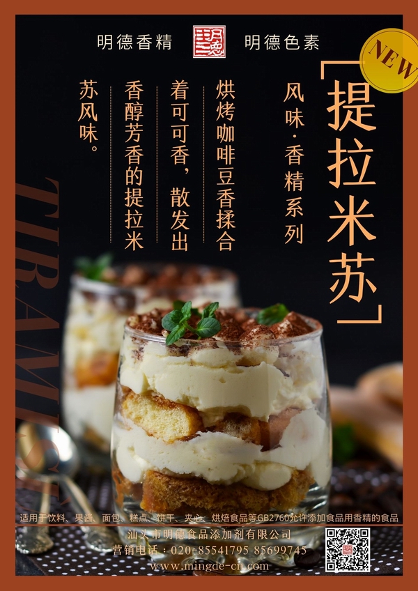 濃郁的提拉米蘇香氣,獨(dú)特香濃的提拉米蘇香味融合著香甜的奶香、可可香,散發(fā)著濃厚、飽滿的提拉米蘇風(fēng)味。