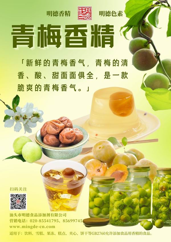 在梅子風(fēng)味香精領(lǐng)域我們數(shù)十年潛心專研,迎合市場需求,滿足消費(fèi)者喜好,汕頭市明德食品添加劑有限公司,推出了多種款梅子風(fēng)味香精,如:青梅風(fēng)味、酸梅風(fēng)味、話梅風(fēng)味、酸梅湯風(fēng)味等。