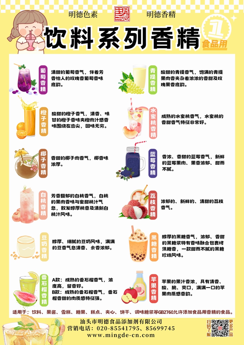 如需獲取不同版本風(fēng)味樣品或配方方案,歡迎聯(lián)系明德團隊。我們致力于為食品工廠提供真實、安全、高性價比的香精解決方案。